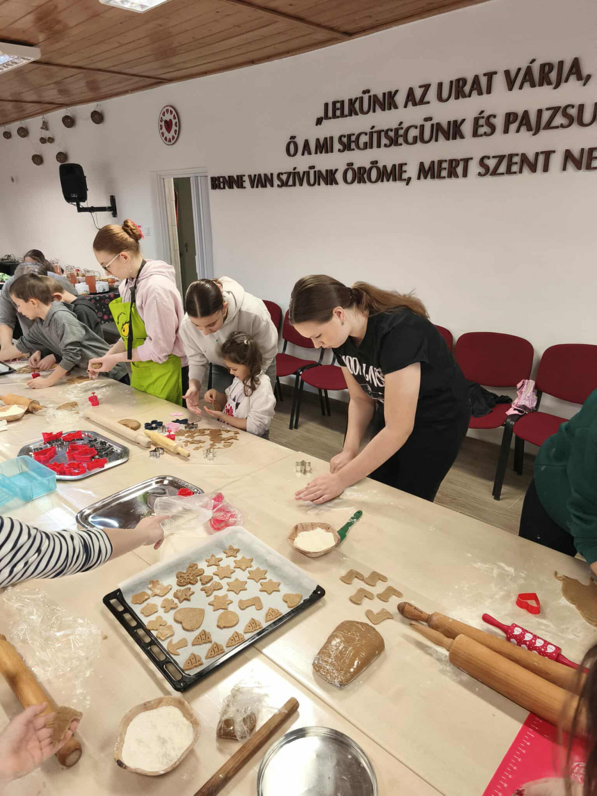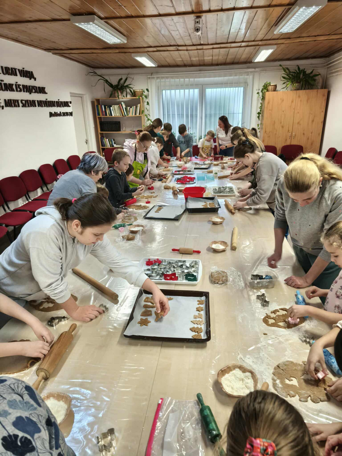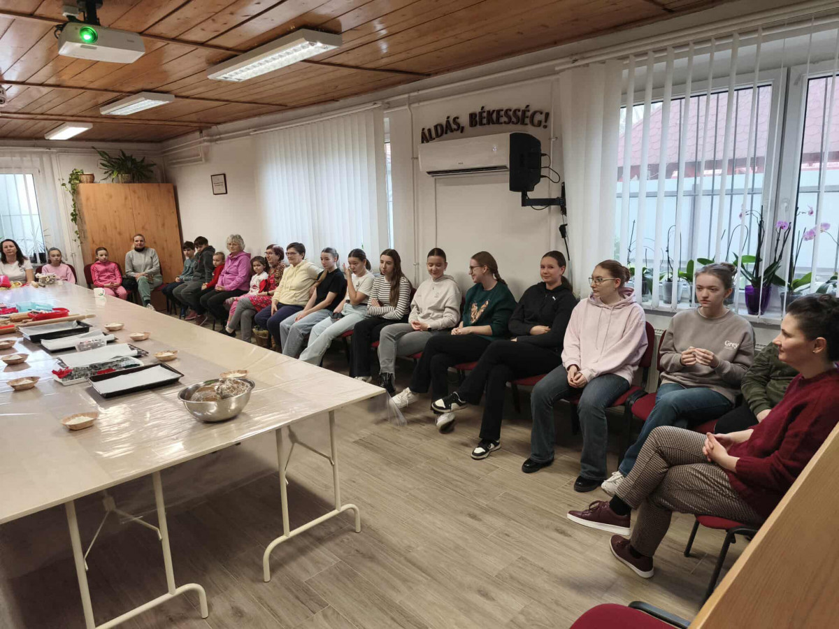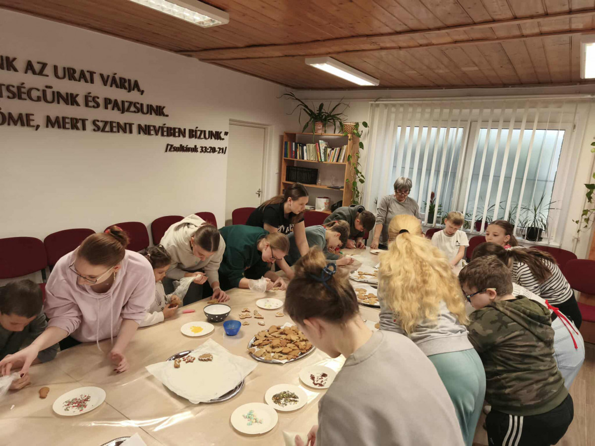 Nagy örömmel adunk hírt arról, hogy november 29-én, szombaton lezajlott a mézeskalács sütéssel egybekötött, adventre készülődő foglalkozásunk a gyülekezeti teremben. Ezt az alkalmat a gyermek-istentiszteletre, hittanra járó, illetve nyáron velünk táborozó gyerekek számára terveztük, és nagy öröm számunkra, hogy szép számmal el is jöttek. Külön hálás a szívünk, hogy a konfirmandus és a konfirmáció utáni korosztályból is részt vettek néhányan az alkalmon, így összesen 25 gyermek és fiatal készítette a mézeskalácsokat, melyeket az istentisztelet utáni vásárban meg is lehet kóstolni.