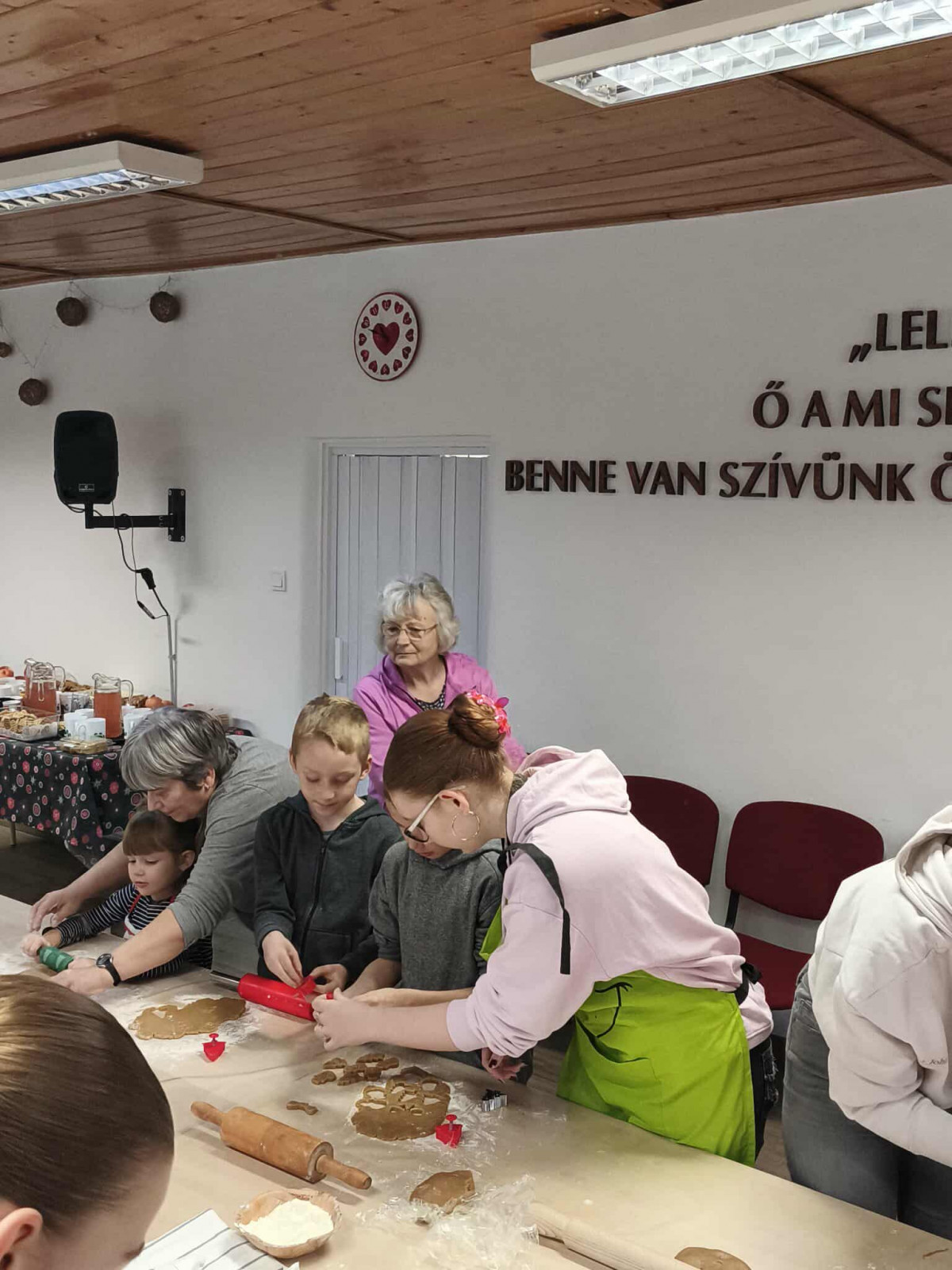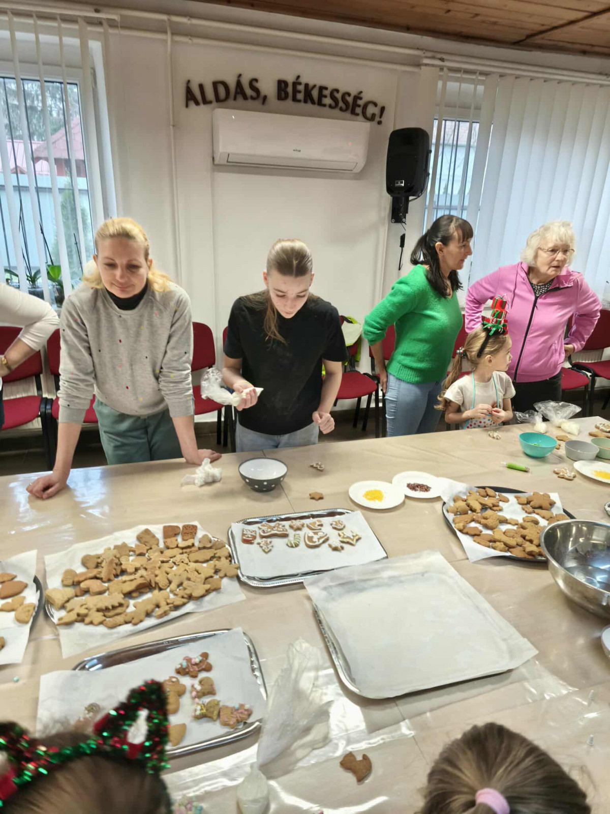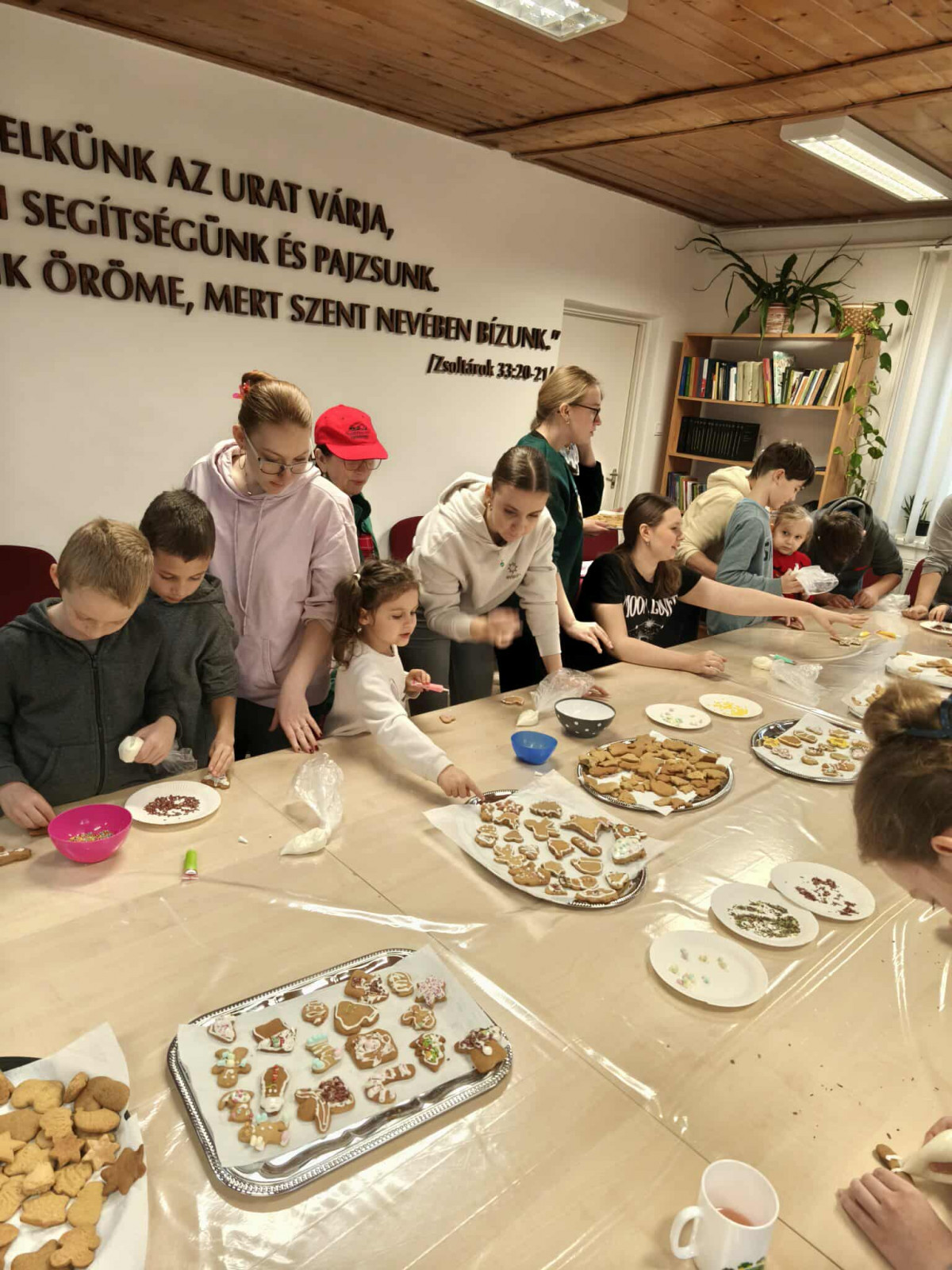 Nagy örömmel adunk hírt arról, hogy november 29-én, szombaton lezajlott a mézeskalács sütéssel egybekötött, adventre készülődő foglalkozásunk a gyülekezeti teremben. Ezt az alkalmat a gyermek-istentiszteletre, hittanra járó, illetve nyáron velünk táborozó gyerekek számára terveztük, és nagy öröm számunkra, hogy szép számmal el is jöttek. Külön hálás a szívünk, hogy a konfirmandus és a konfirmáció utáni korosztályból is részt vettek néhányan az alkalmon, így összesen 25 gyermek és fiatal készítette a mézeskalácsokat, melyeket az istentisztelet utáni vásárban meg is lehet kóstolni.