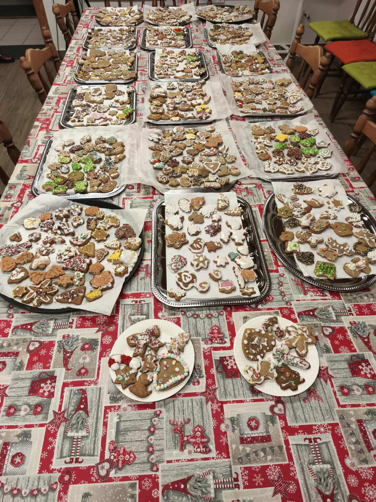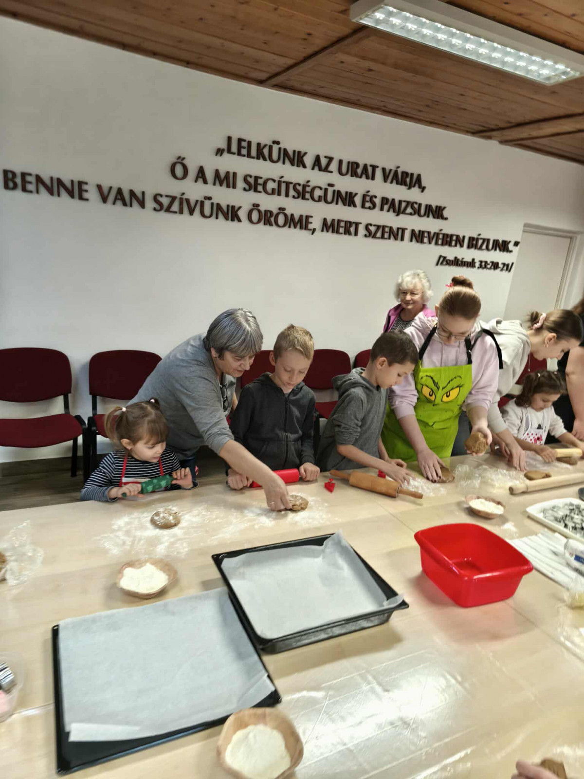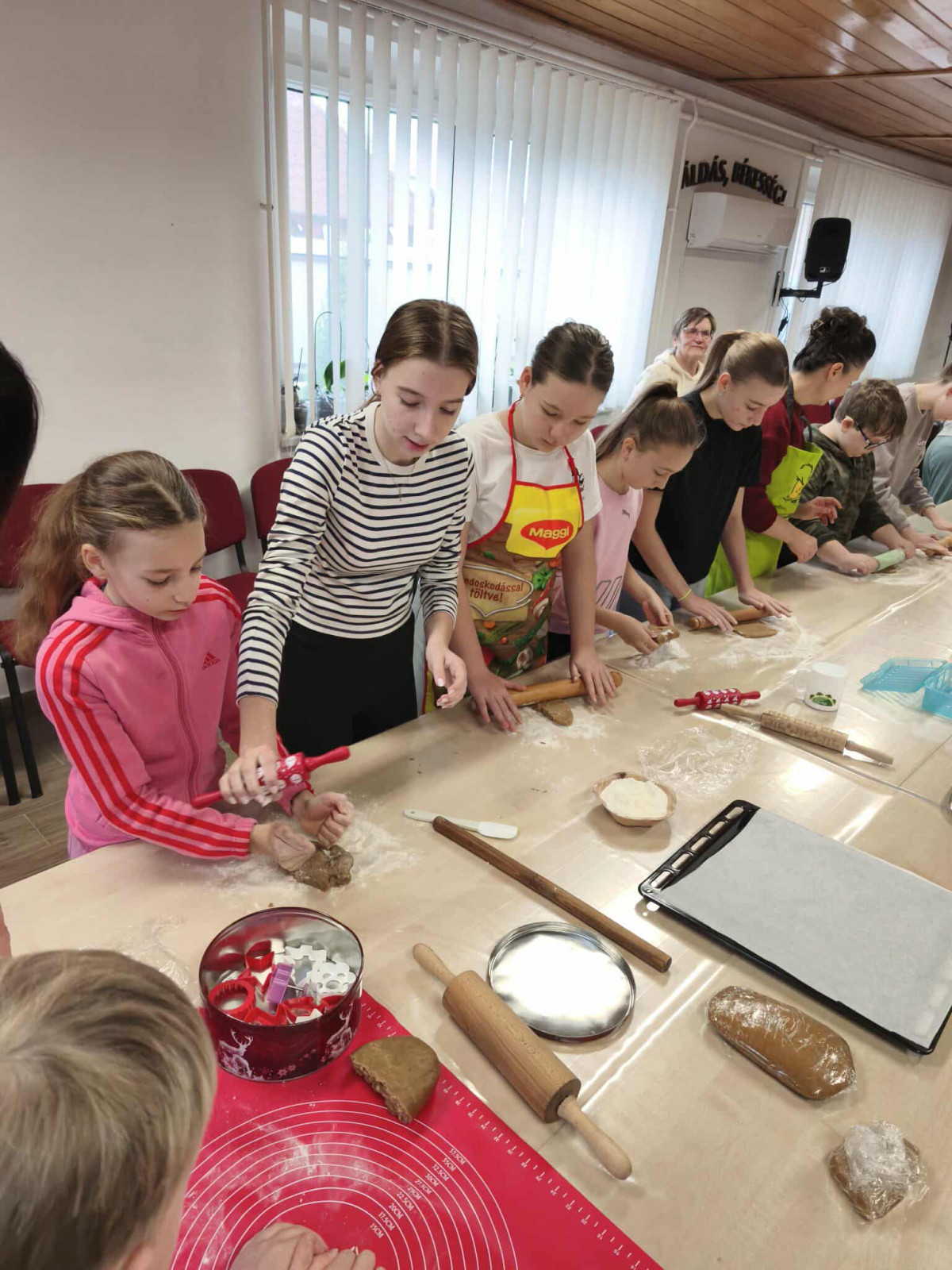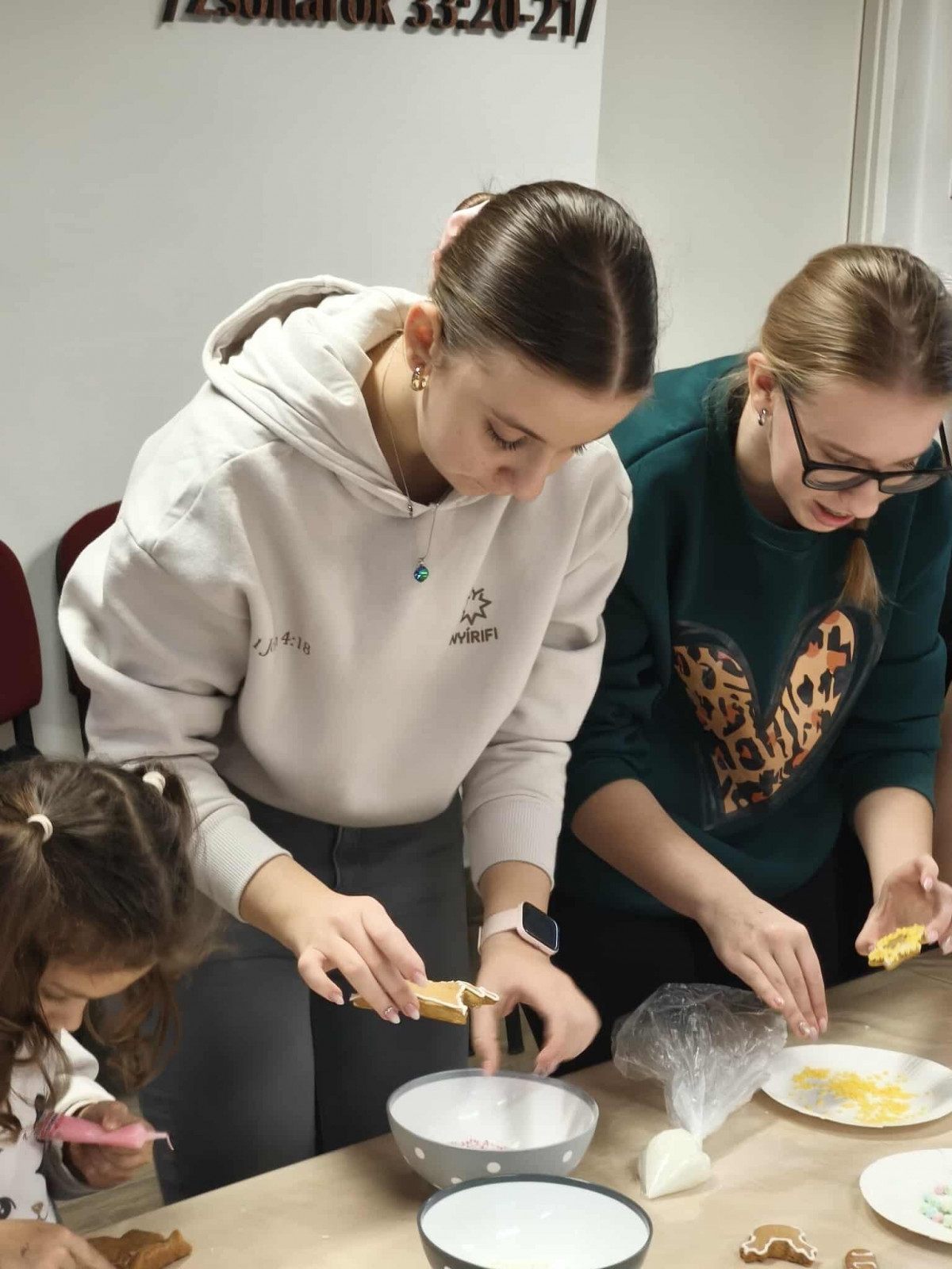 Nagy örömmel adunk hírt arról, hogy november 29-én, szombaton lezajlott a mézeskalács sütéssel egybekötött, adventre készülődő foglalkozásunk a gyülekezeti teremben. Ezt az alkalmat a gyermek-istentiszteletre, hittanra járó, illetve nyáron velünk táborozó gyerekek számára terveztük, és nagy öröm számunkra, hogy szép számmal el is jöttek. Külön hálás a szívünk, hogy a konfirmandus és a konfirmáció utáni korosztályból is részt vettek néhányan az alkalmon, így összesen 25 gyermek és fiatal készítette a mézeskalácsokat, melyeket az istentisztelet utáni vásárban meg is lehet kóstolni.